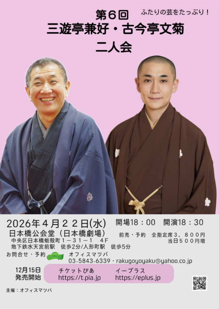 「第6回 三遊亭兼好・古今亭文菊二人会」日本橋公会堂