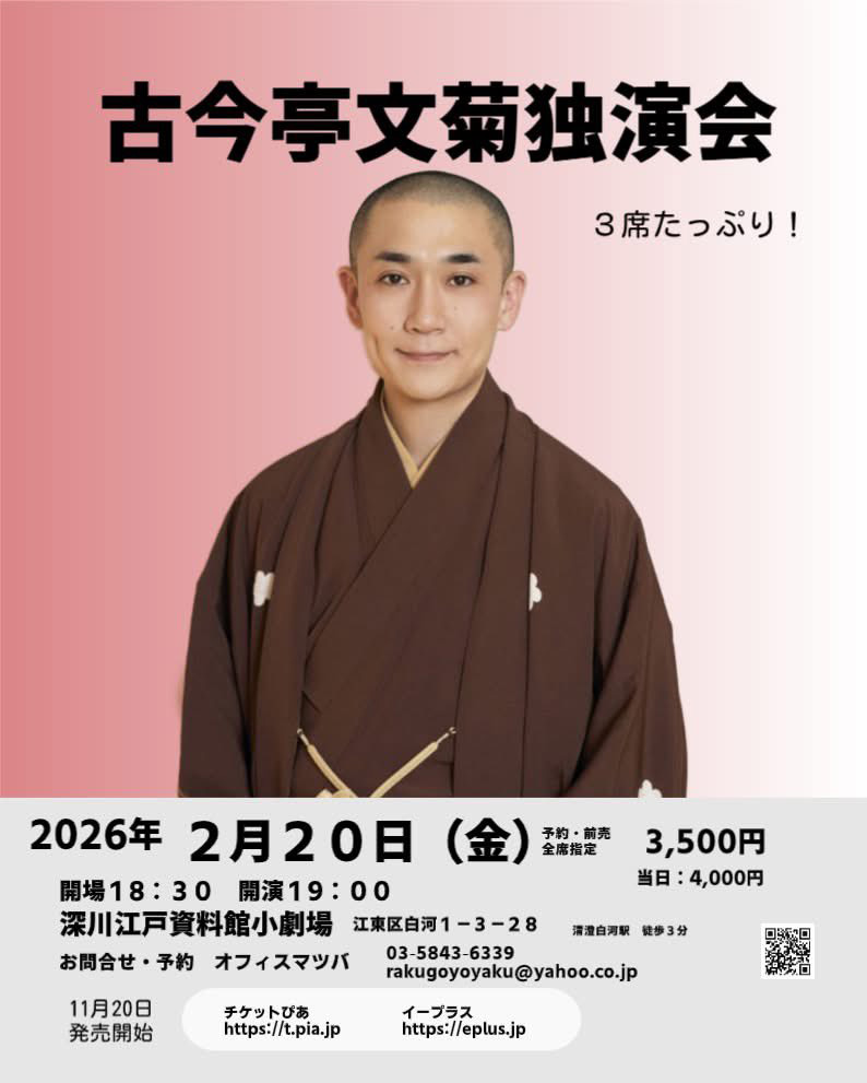「古今亭文菊独演会 品川心中/天災/豊竹屋」深川江戸資料館