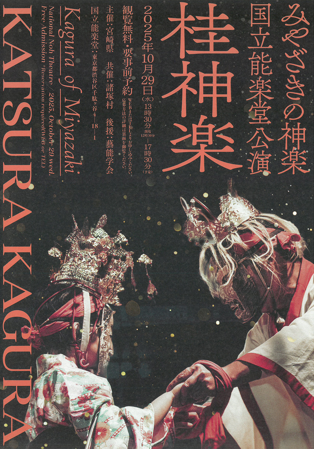 国立能楽堂で「みやざきの神楽 桂神楽(諸塚村)」を拝見、抽選で外れ続けていたため3年ぶりです小川直之さんの(國學院大學名誉教授)解説によると、中世紀(1500年代)の資料が残っているのは非常に珍しく、濃密に語り継がれている唱教(しょうぎょう)は唯一無二、と言ってもいいそうです。