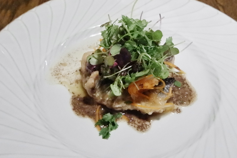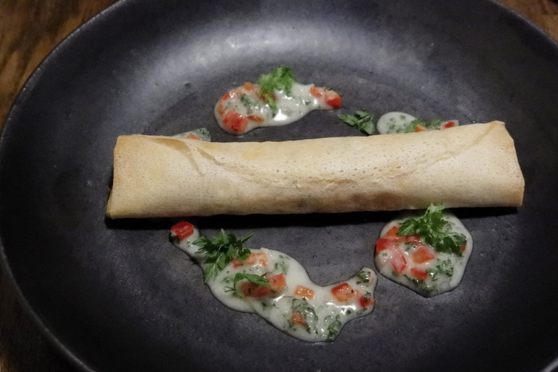 「タラバガニと蓮根のパートブリック包み、ラヴィゴットソース」