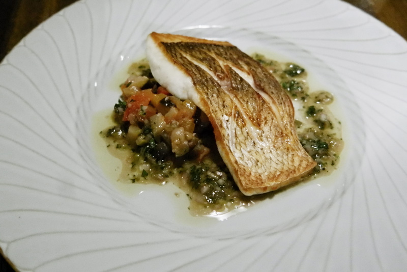 「マダイのポワレとラタトゥイユ、プロヴァンス風ヴィネグレットソース」